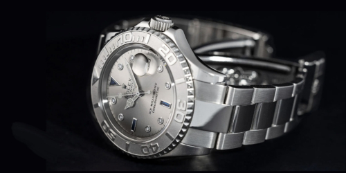 April 20, 2023 – The ultimate Yacht Master is up for auction this weekend! Commissioned by the late President of Rolex, the…drum roll…. One and Only, Dix Millionieme Chronometre, Yacht Master in platinum, sapphires and with diamond indexes dial, reference 16620PT will be auctioned on 22-23rd April in Monaco at the Monaco Legends Auction. This amazing timepiece is a prototype, built completely in platinum in 1992 at the order of then Rolex CEO Patrick Heiniger. Heiniger himself was responsible for